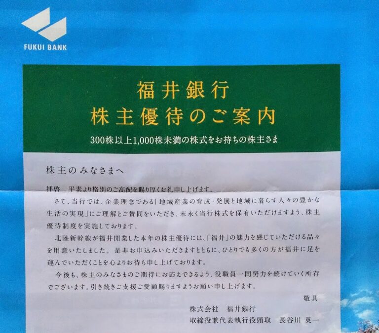 福井銀行(8362)申込み案内到着(3月末)