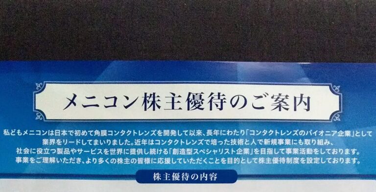 メニコン(7780)申込み案内到着(3月末)