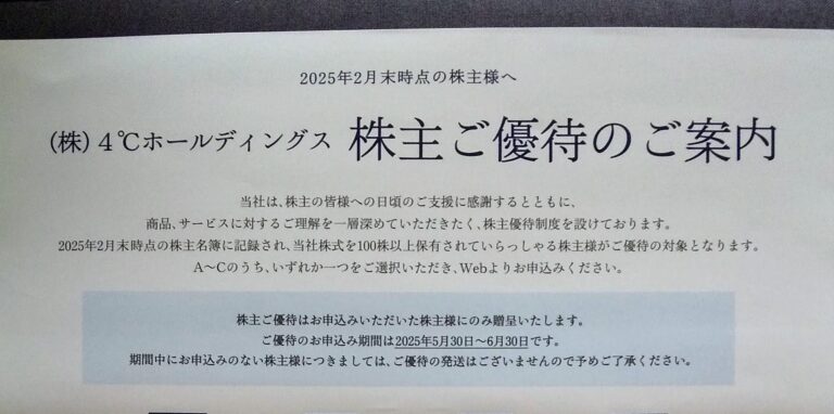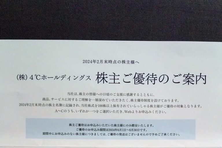 ウェルス・マネジメント (3772)優待申込み案内到着(6・9・12月末)