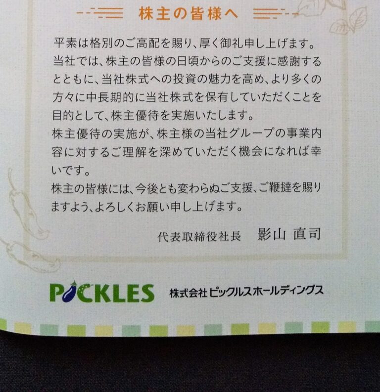 ピックルスホールディングス (2935)優待品到着(2月末)