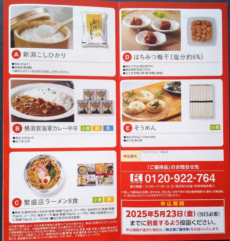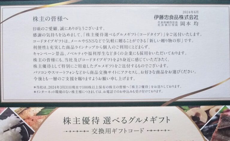 伊藤忠食品(2692)優待申込み案内到着(3月末)