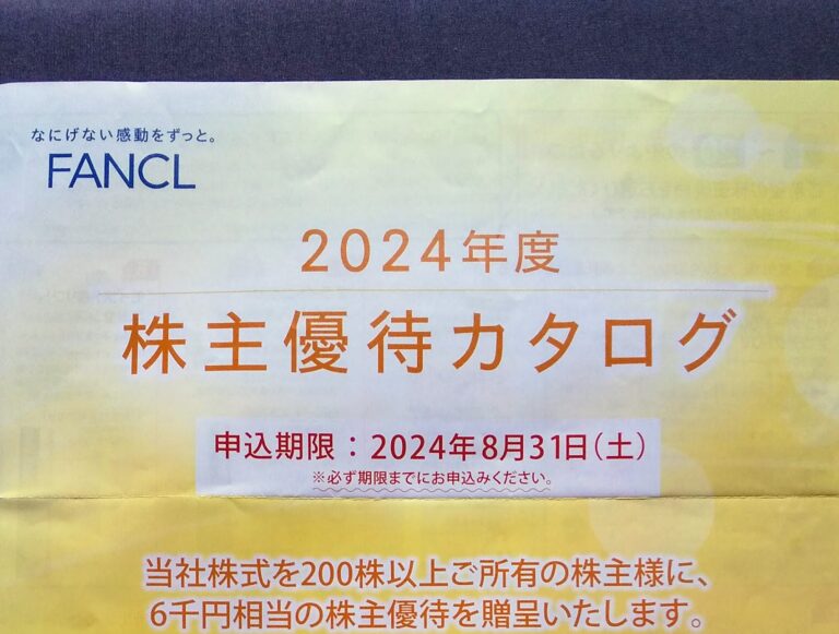 ファンケル (4921)優待申込み案内到着(3月末)