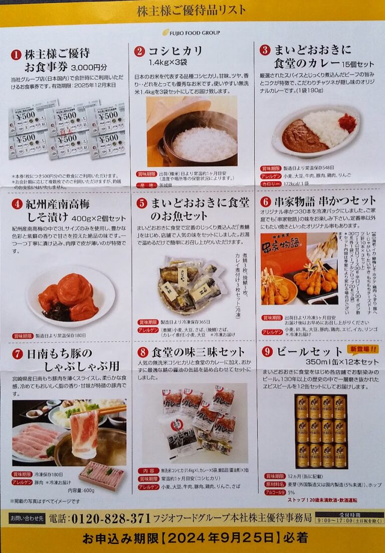 フジオフードグループ本社 (2752)優待申込み案内到着(6・12月末)