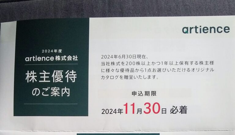 artience (4634)優待申込み案内到着(6月末)