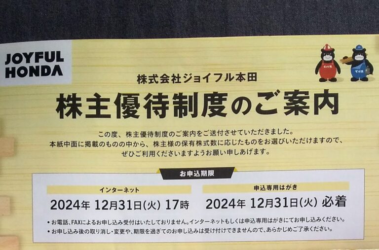 ジョイフル本田 (3191)優待申込み案内到着(6/20)