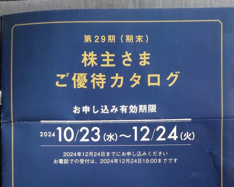 コロワイド(7616)優待申込み案内到着(3・9月末)