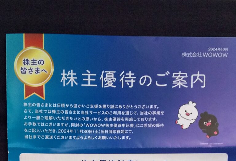 WOWOW (4839)優待品到着(9月末)