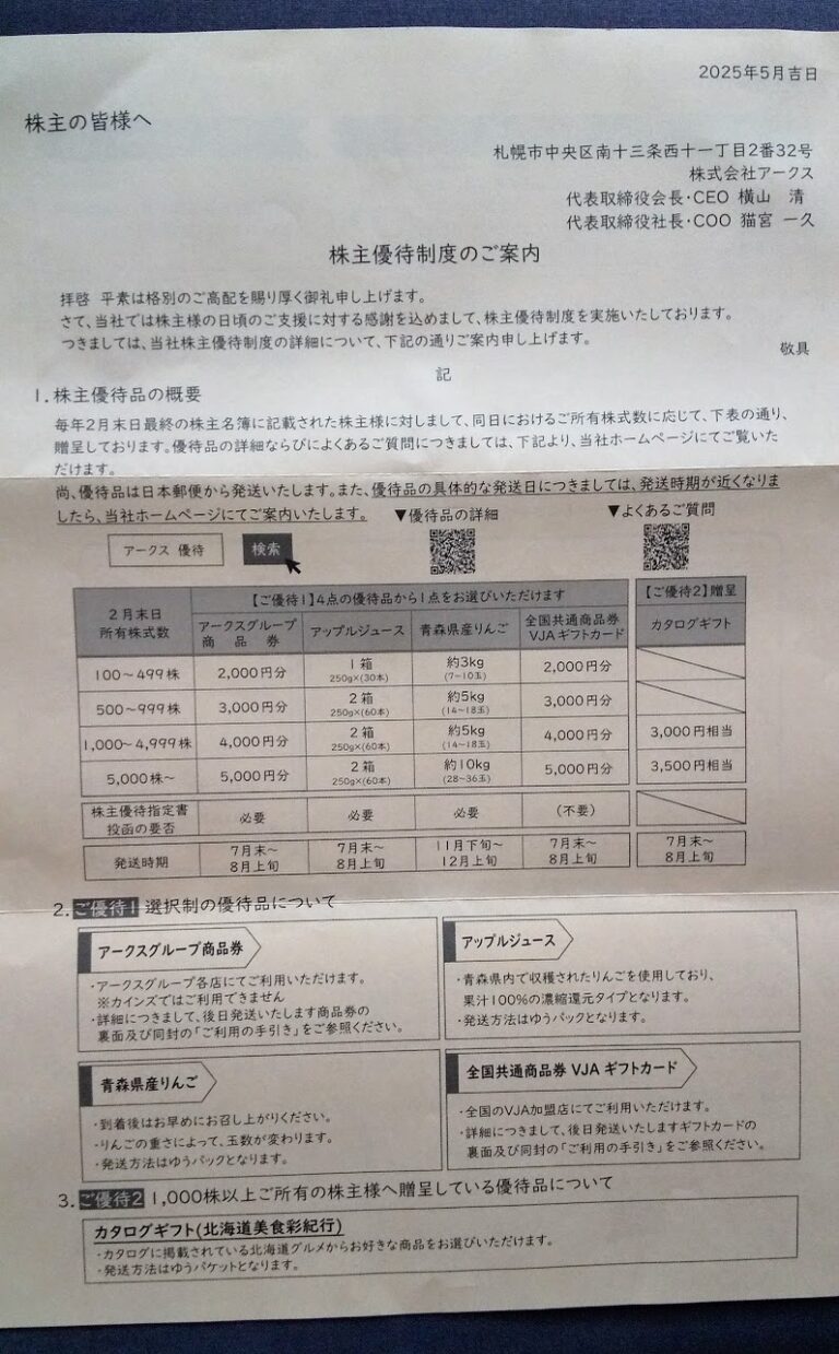 アークス(9948)申込み案内到着(2月末)