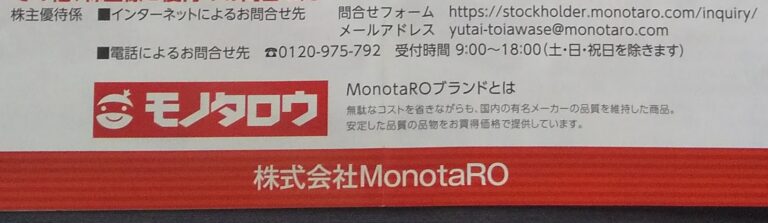 MonotaRO モノタロウ(3064)申込み案内到着(12月末)
