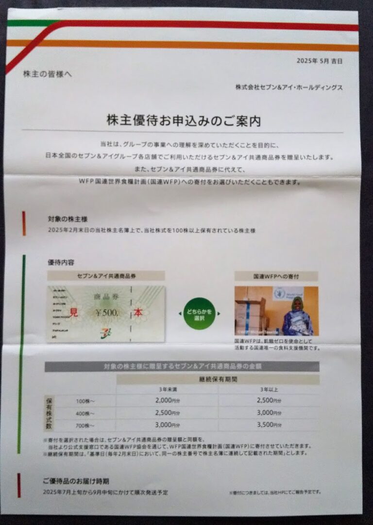 セブン&アイ・ホールディングス (3382)申込み案内到着(2月末)
