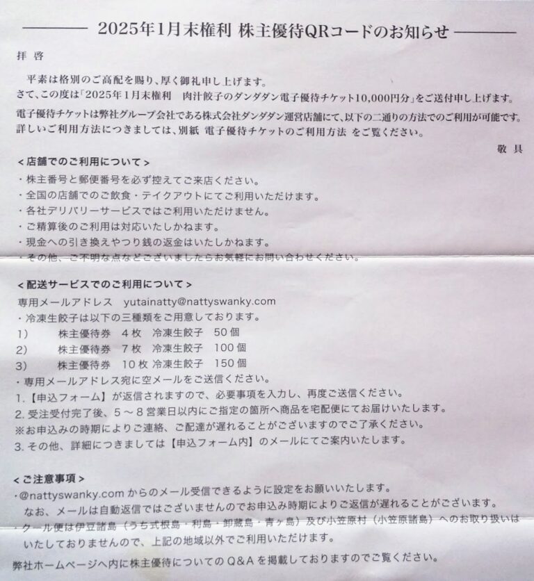 NATTY SWANKYホールディングス (7674)申込み案内到着(1・7月末)