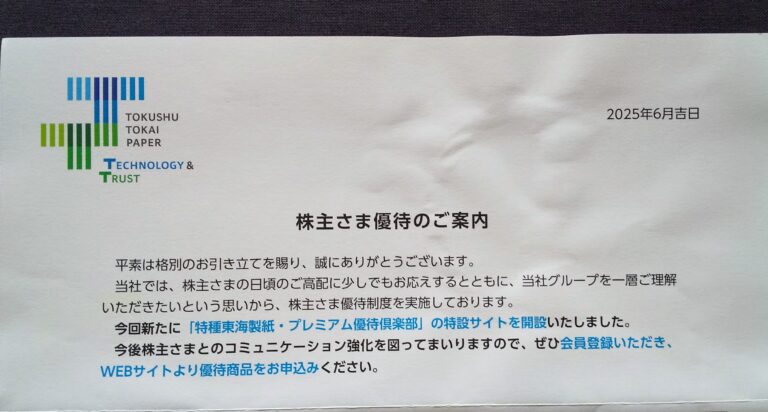 特種東海製紙(3708)申込み案内到着(3月末)
